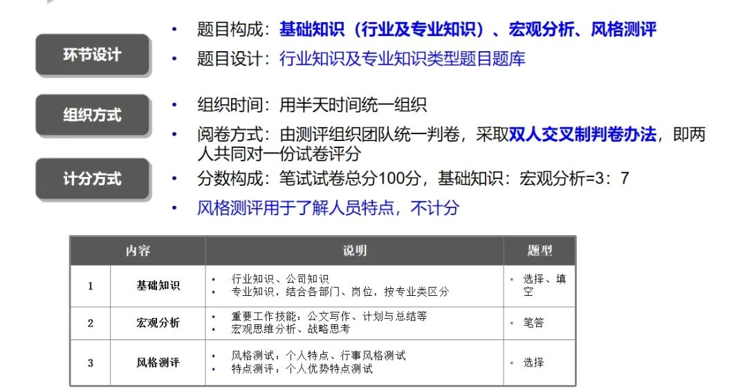 笔试主要考察基础知识、宏观分析能力、个人风格特点等。