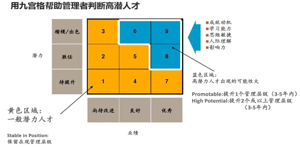 测评结果出来以后,我们就需要对测评结果进行分析,确定人才的质量、数量等,常见分析工具有九宫格分析法。